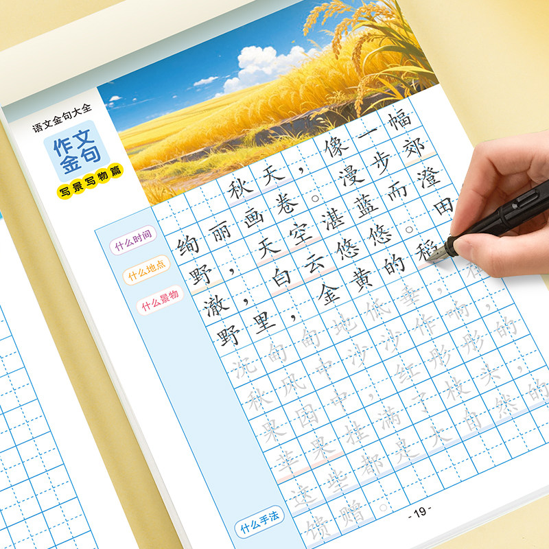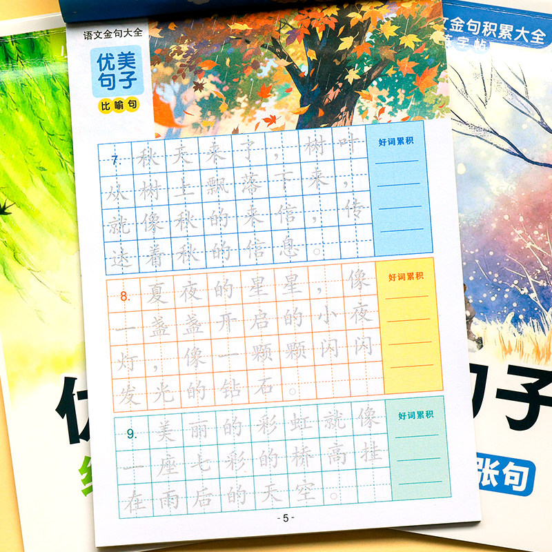 优美句子好词好句好段作文金句素材积累大全小学生语文1--6年级修辞手法比喻拟人排比夸张摘抄字帖写人写事写景写物提升写作练字帖 - 字美体图书专营店
