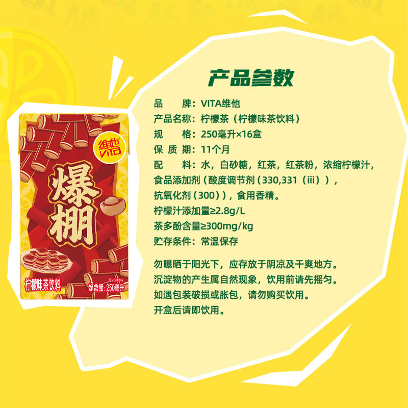 【年货限定礼盒款】vita维他柠檬茶柠檬味茶饮料250ml*16盒整箱 - vita维他旗舰店