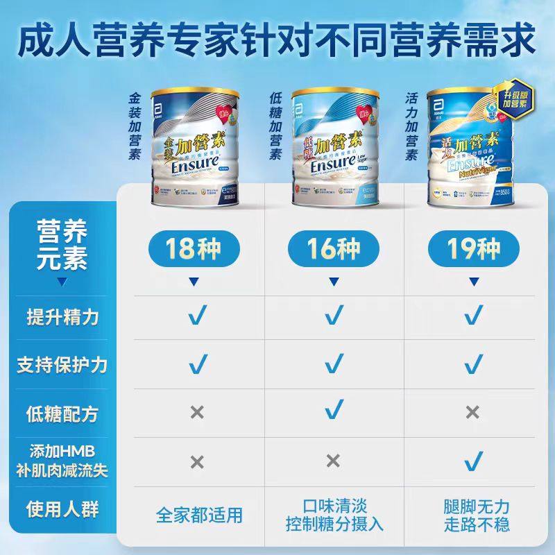 雅培ensure港版低糖香草味加营素成人中老年金装营养粉850g蛋白粉 - 雅培营养品海外旗舰店