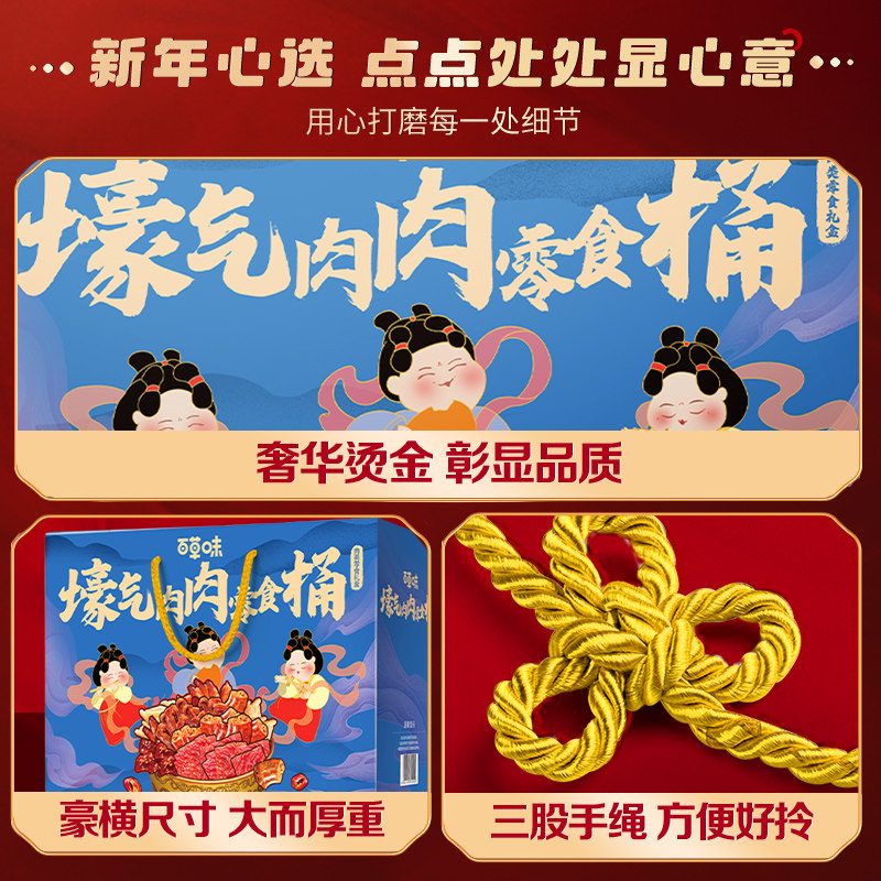 百草味肉卤零食礼包肉礼盒1235g猪肉铺休闲鸭脖鸡爪零食节日送礼 - 百草味官方旗舰店
