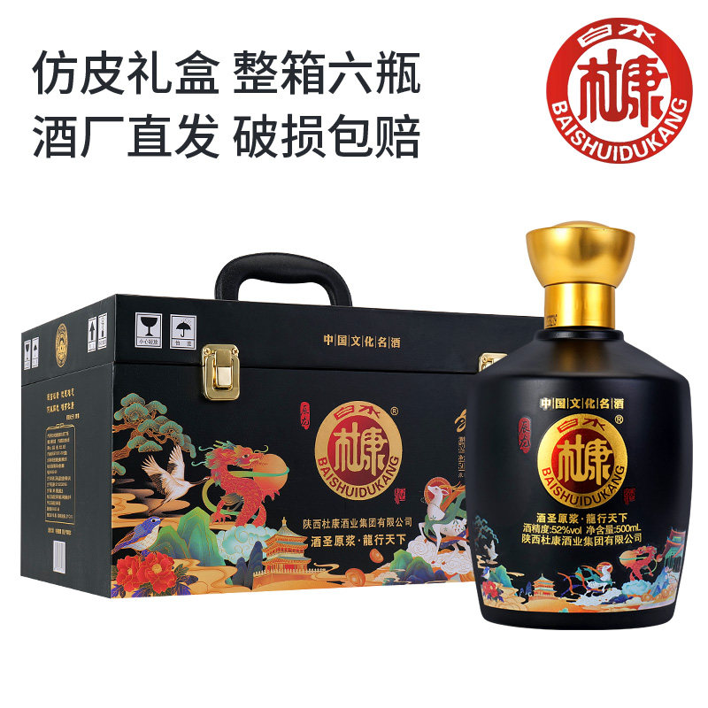 白水杜康【龙行天下】浓香型52度白酒整箱6瓶*500ml精致手提礼箱 - 醉苍穹酒类专营店