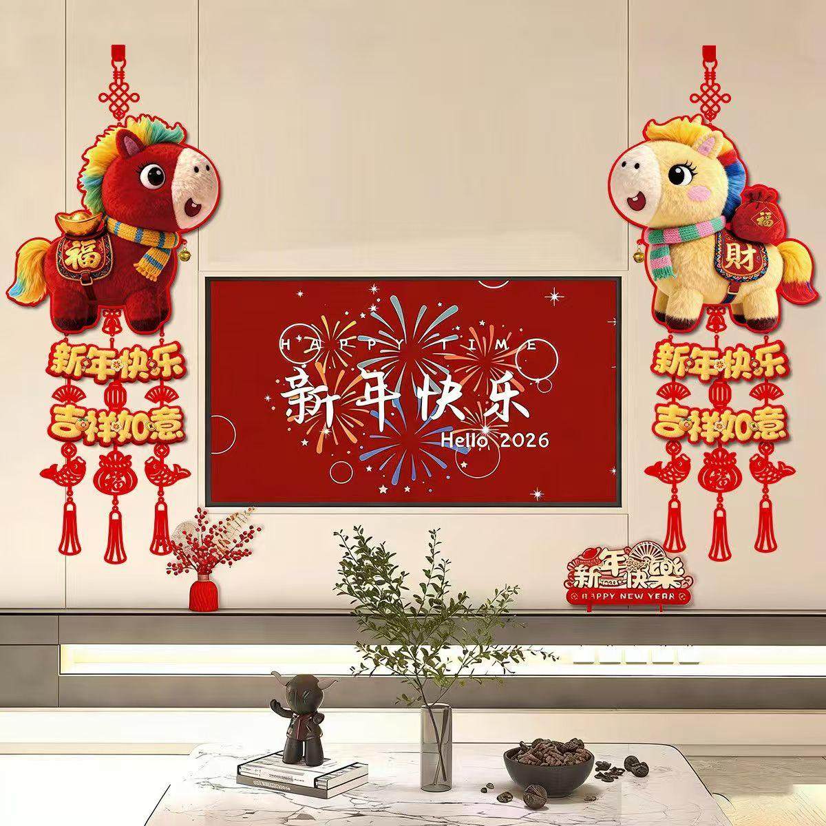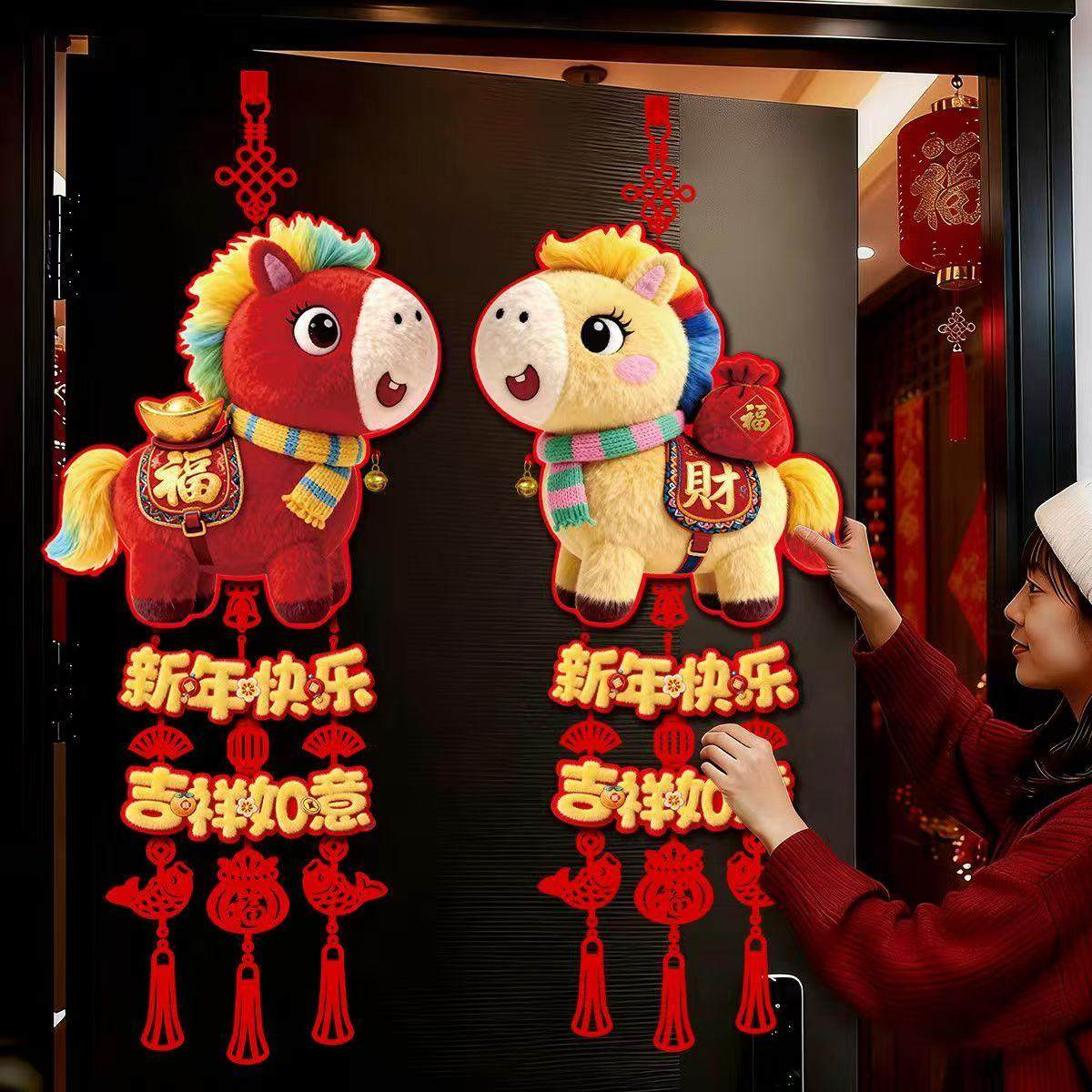 【到手一对】马年5D仿刺绣毛绒福字挂件春节大门客厅背景墙装饰FF - 美如佳家居