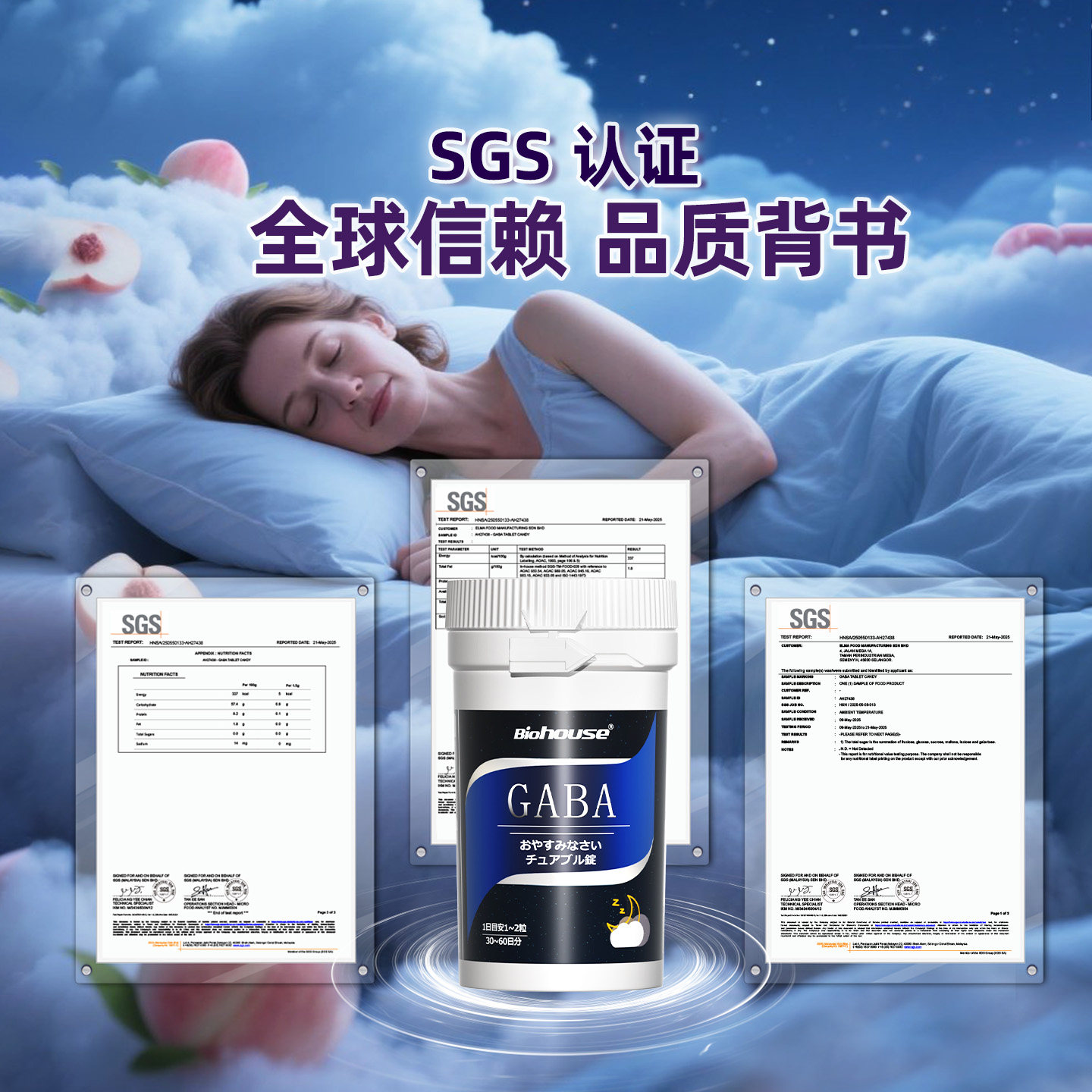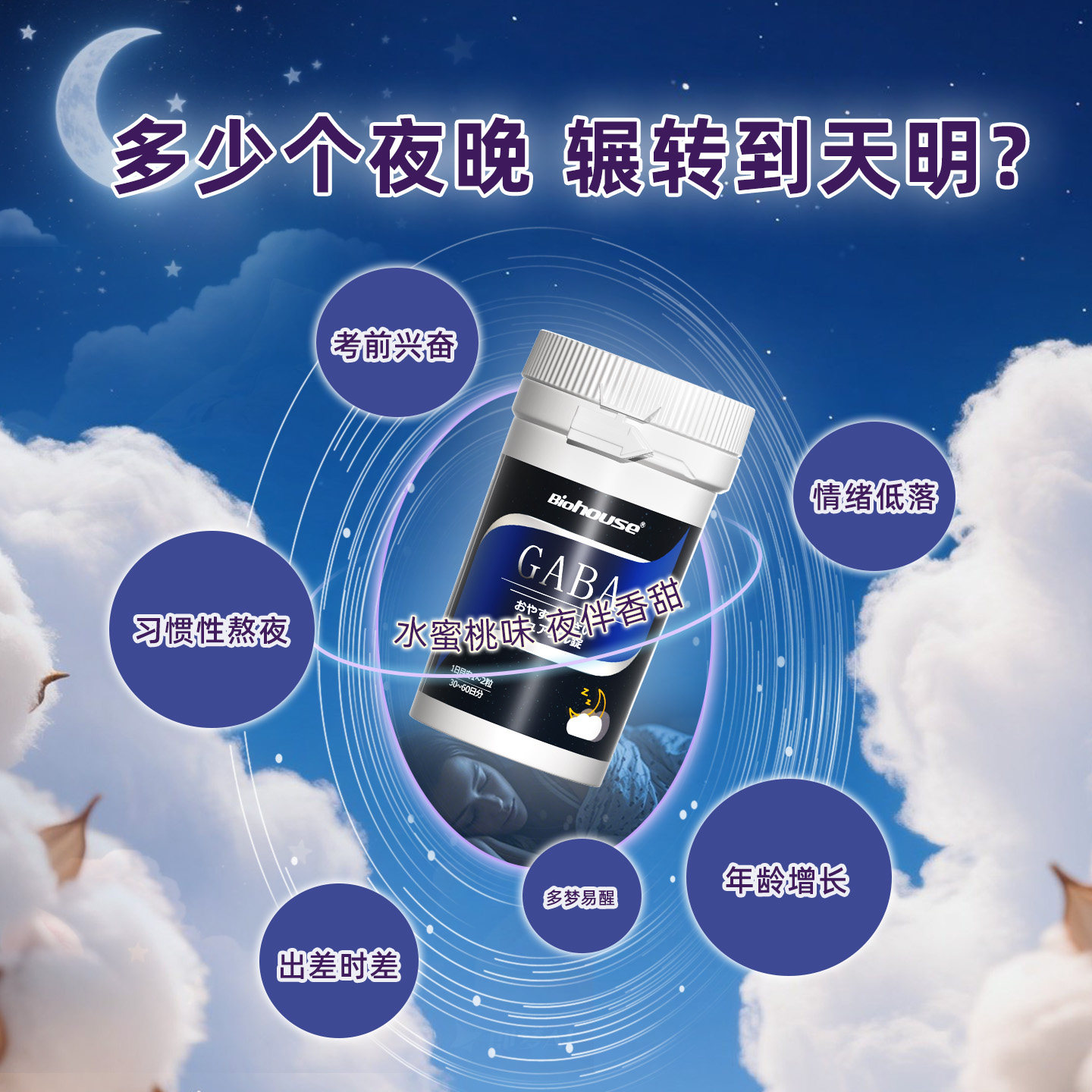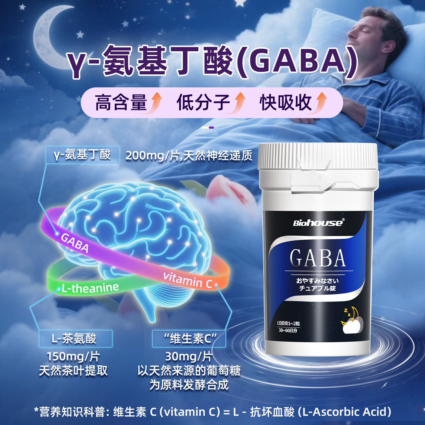 Biohouse进口氨基丁酸gaba茶氨酸闪助晚安睡眠片非褪黑素软糖 - BIOHOUSE健康海外旗舰店