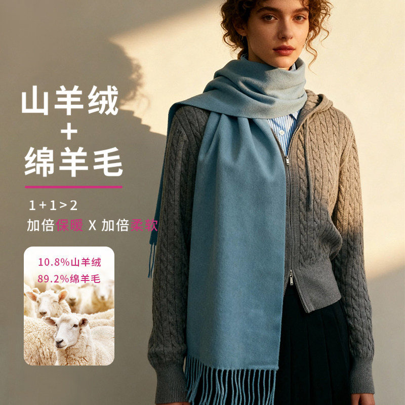 您的位置:优特荟  >   >  万物生羊绒羊毛围巾女冬蓝色纯色女生男生情侣轻薄款百搭保暖围脖