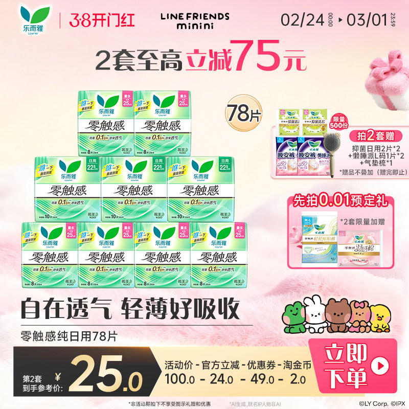 【抢!拍2送梳子】花王卫生巾乐而雅零触感全周期日夜组合68片 - 乐而雅官方旗舰店