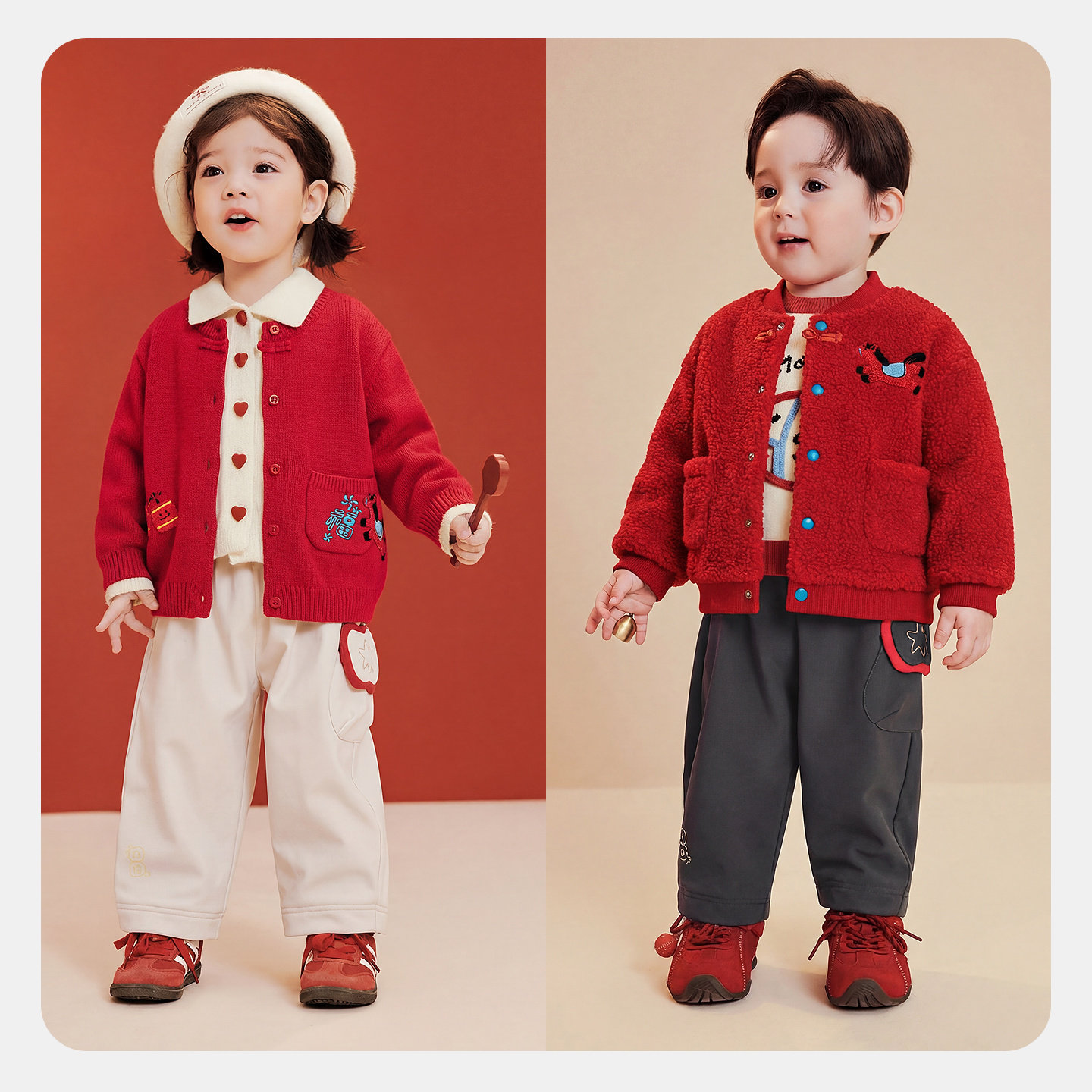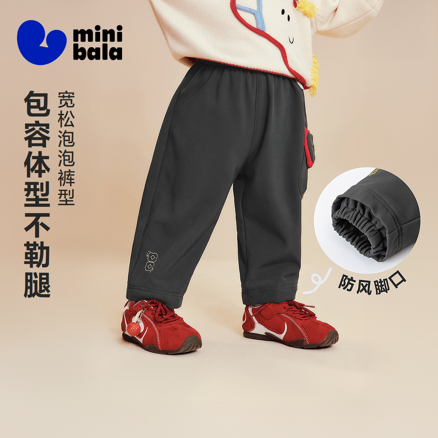 [不勒裤]迷你巴拉男女童宝宝长裤冬季新年加绒拒水拒油污马年裤子 - minibala官方旗舰店