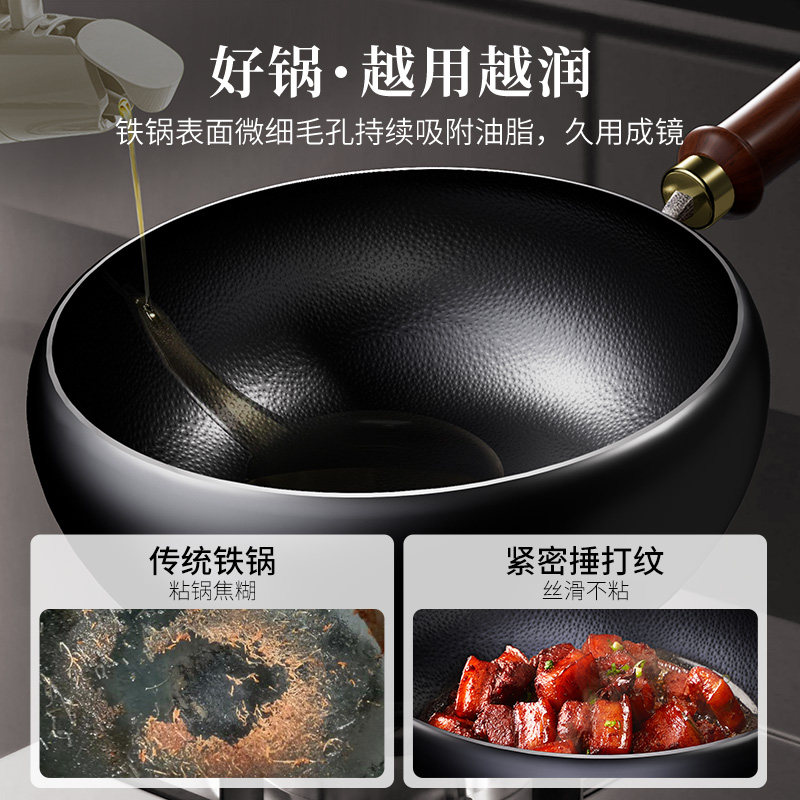 Velosan温仑山手工锻造精铁大肚锅锤纹小铁锅一人食家用小炒锅 - velosan温仑山旗舰店