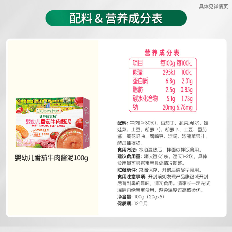 爷爷的农场番茄牛肉肉泥宝宝辅食调味蔬菜泥婴儿菜泥 - 天猫超市