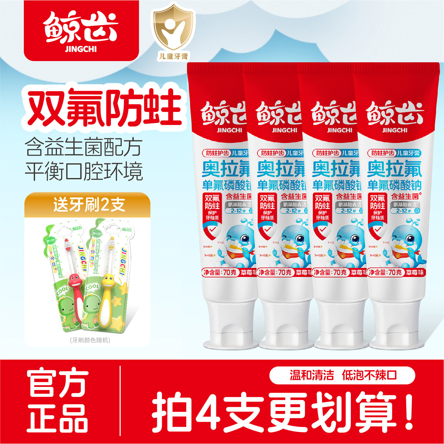 鲸齿儿童专用牙膏含奥拉氟防蛀防龋齿换牙2-6-12岁正品官方旗舰店 - 鲸齿旗舰店