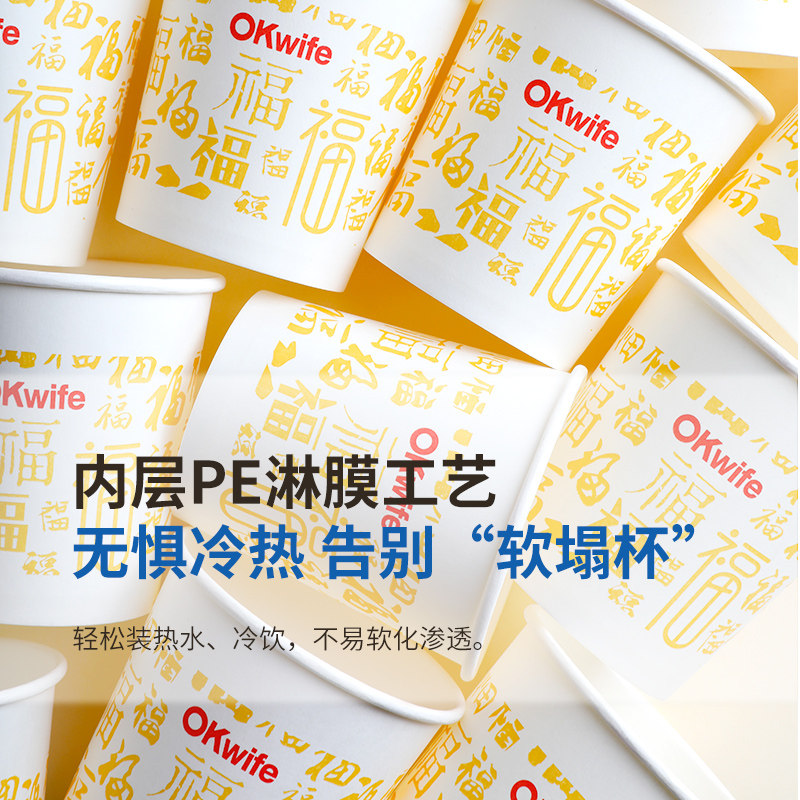 库家金色福字印花耐高温纸杯一次性加厚不易烫手家用办公咖啡杯 - 库家家居旗舰店