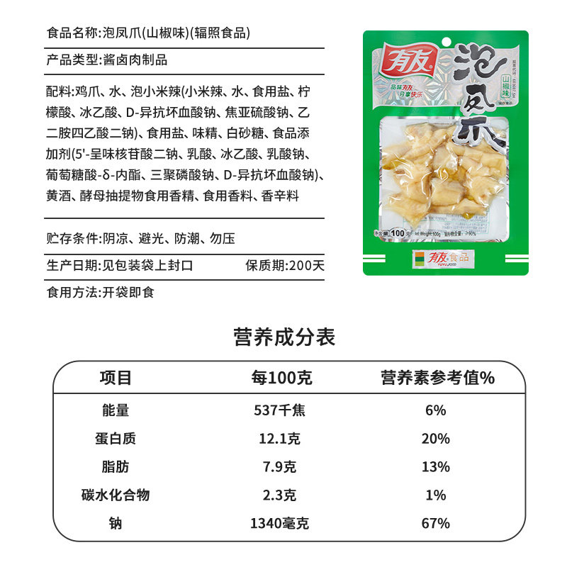 您的位置:优特荟  >   >  有友泡椒凤爪100g*5连包组合装鸡爪重庆特色小吃好货爆款休闲零食