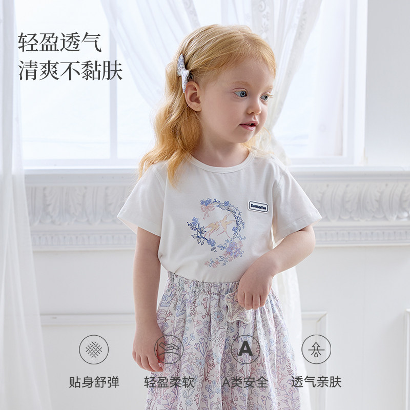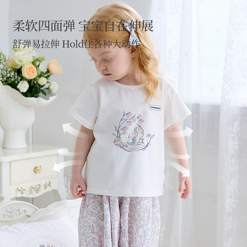 Domiamia女童T恤儿童夏装透气薄款上衣家居服女宝宝短袖衣服 - domiamia旗舰店