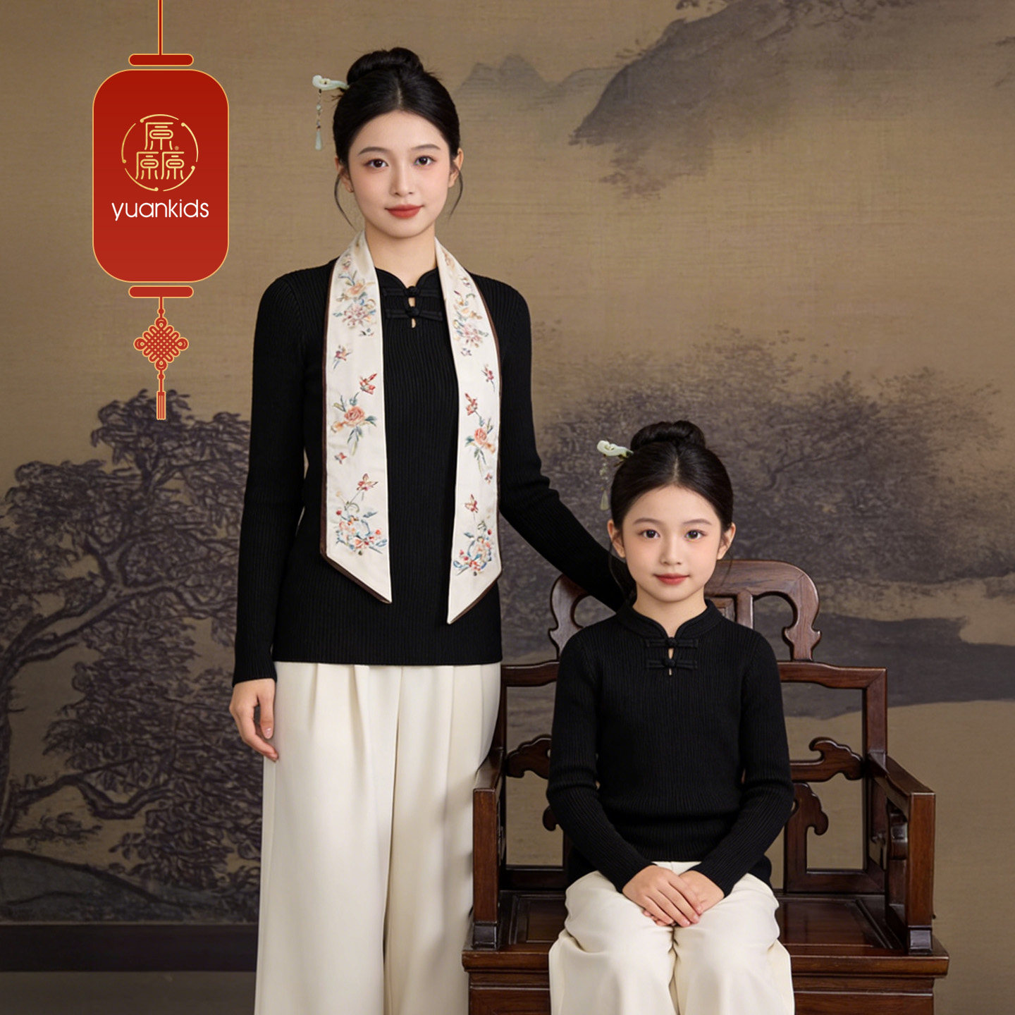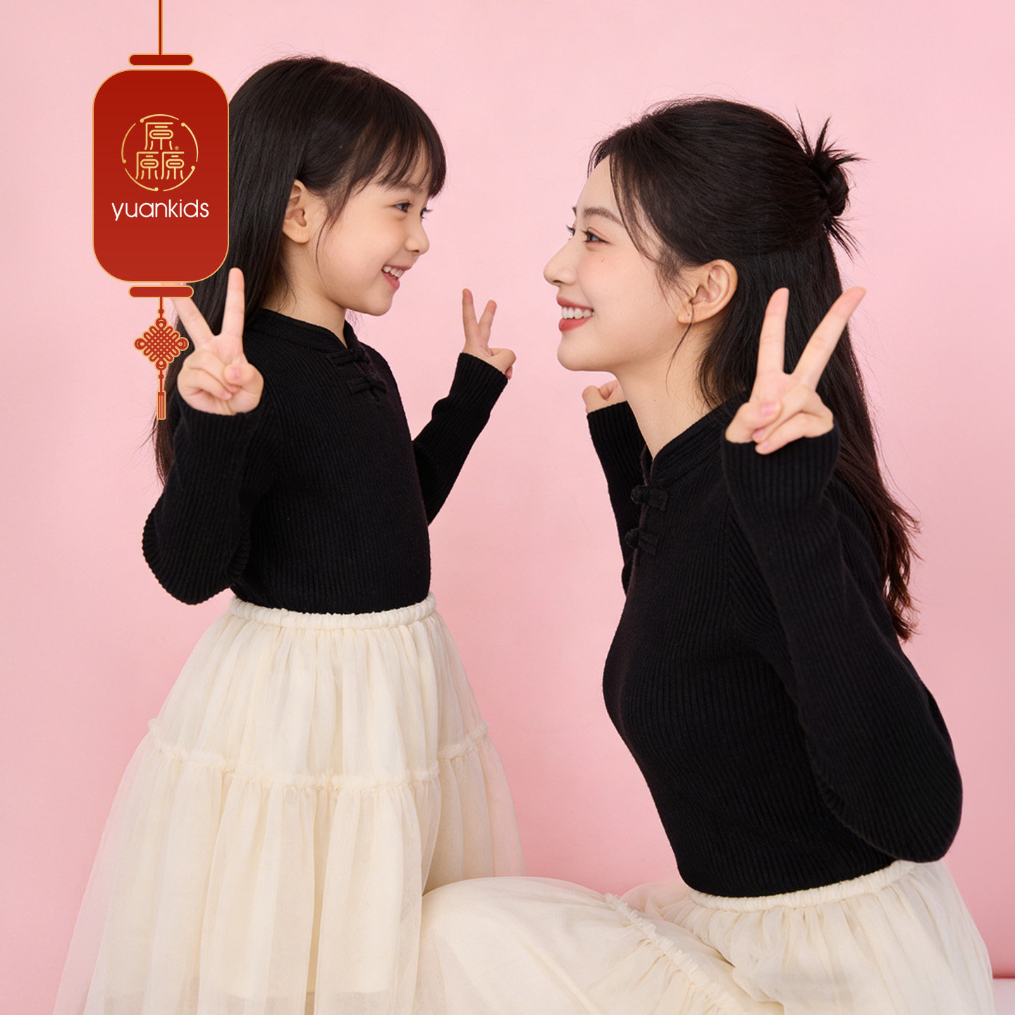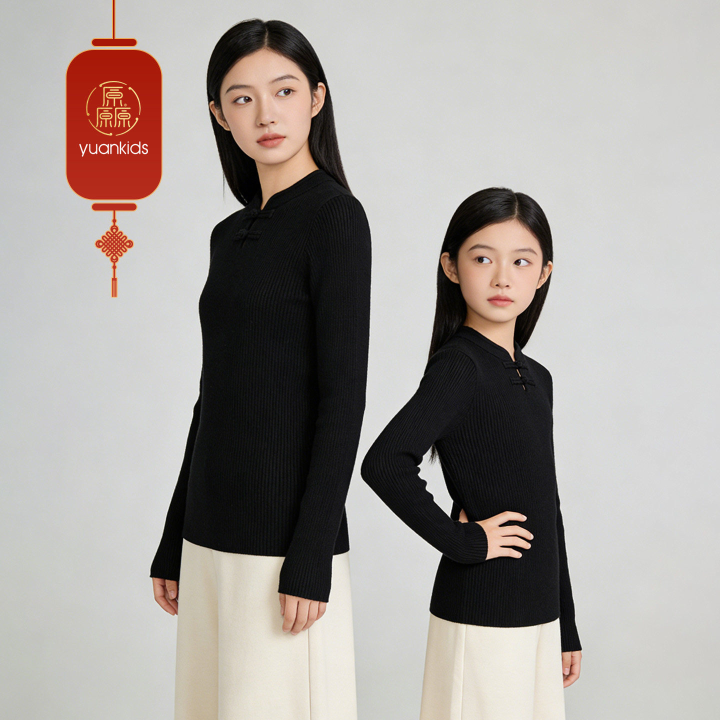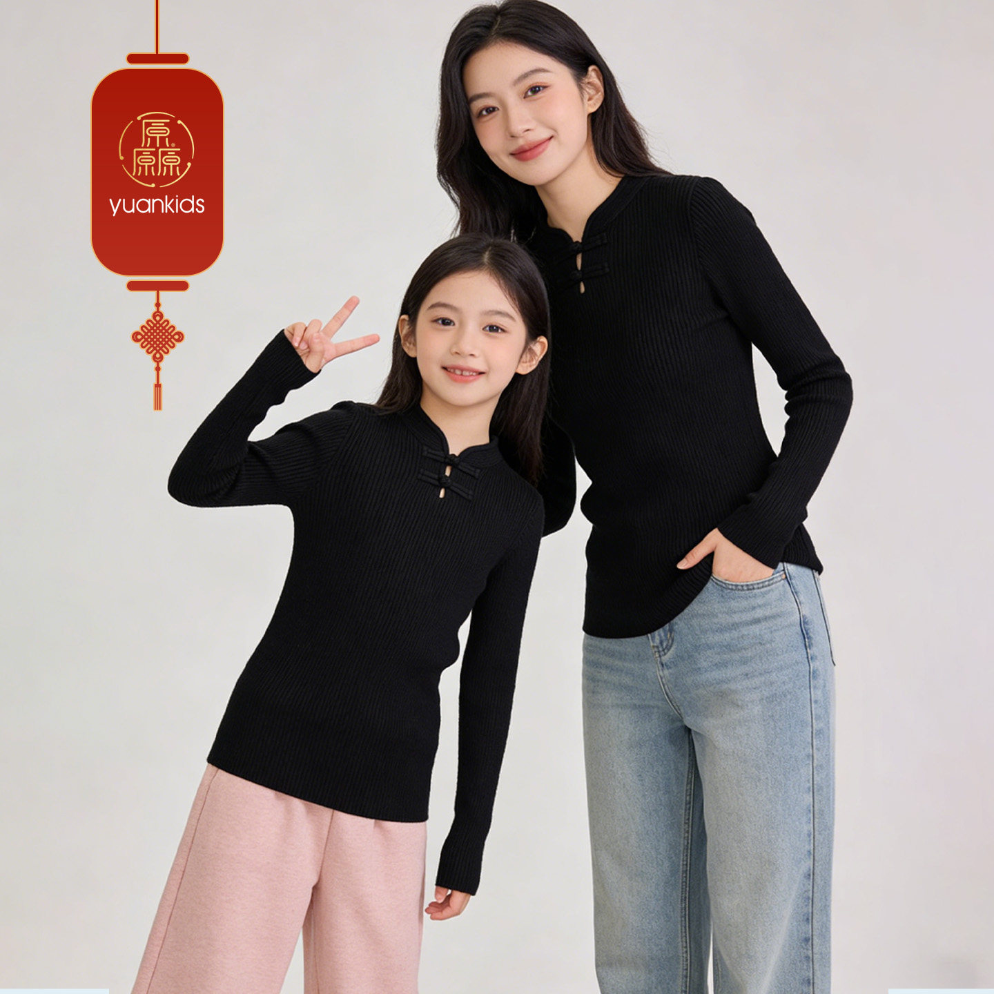 厵yuan女童针织衫秋冬新款儿童新中式毛衣冬季内搭上衣亲子装加厚 - 厵旗舰店