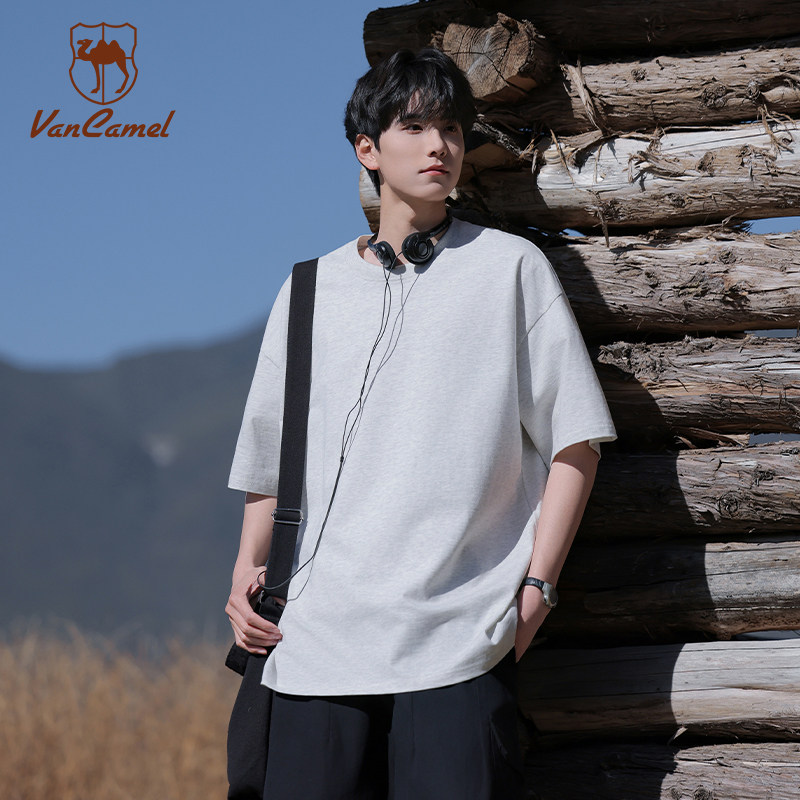 VANCAMEL/西域骆驼220G重磅纯棉短袖男女同款舒适透气圆领T恤上衣 - 西域骆驼虹兔专卖店