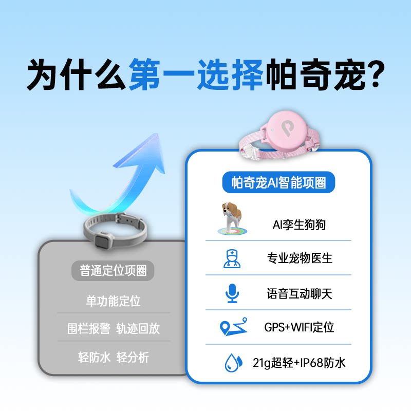 帕奇宠pqc宠物社交AI健康实时GPS定位器狗狗防丢神器防走失项圈 - 帕奇宠旗舰店