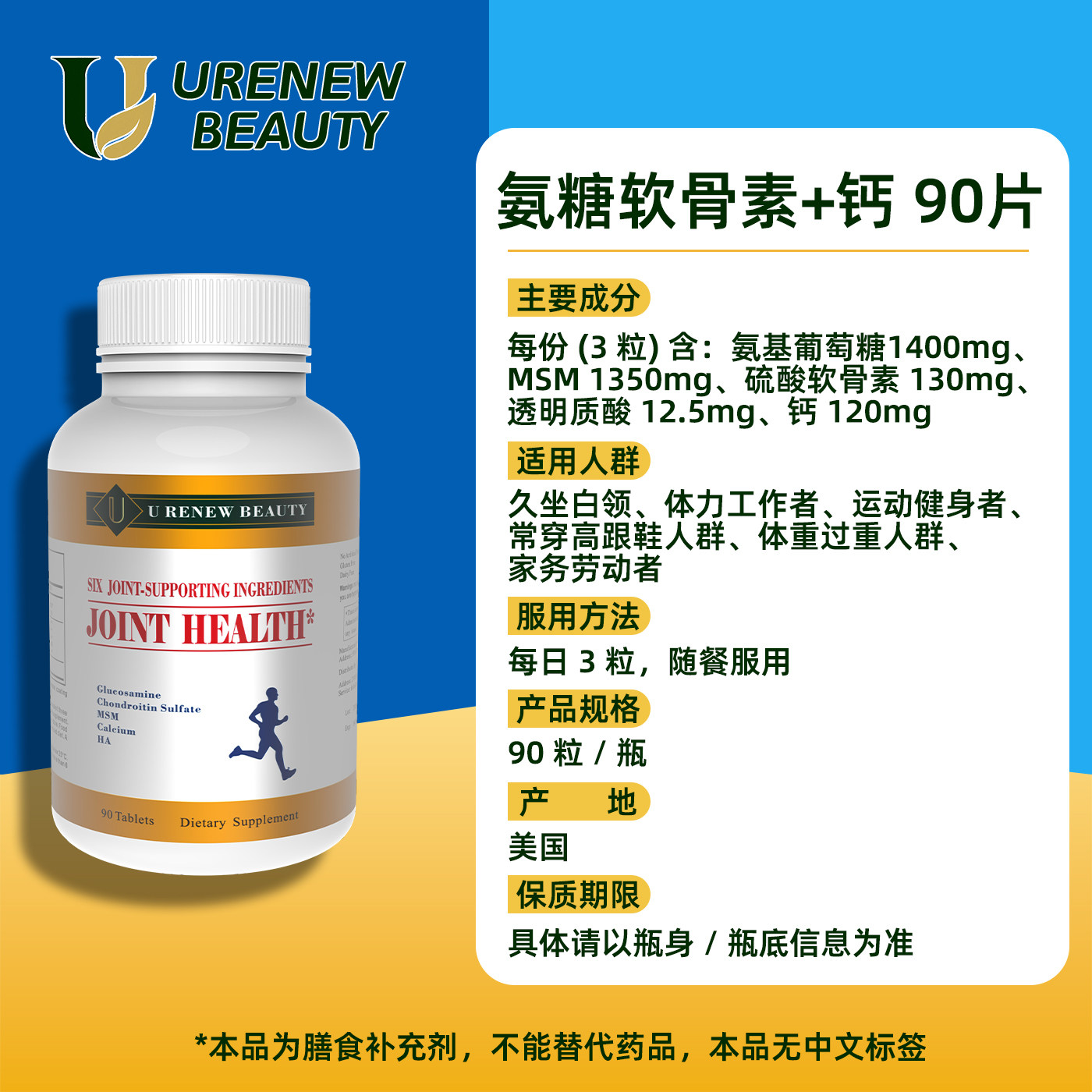 氨糖软骨素美国进口中老年关节片MSM膝盖疼痛养护氨基葡萄糖钙片 - URENEWBEAUTY海外旗舰店