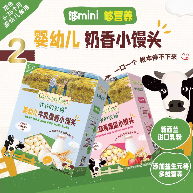 爷爷的农场儿童零食奶香牛乳小馒头夹心米饼磨牙饼干宝宝零食 - 天猫超市
