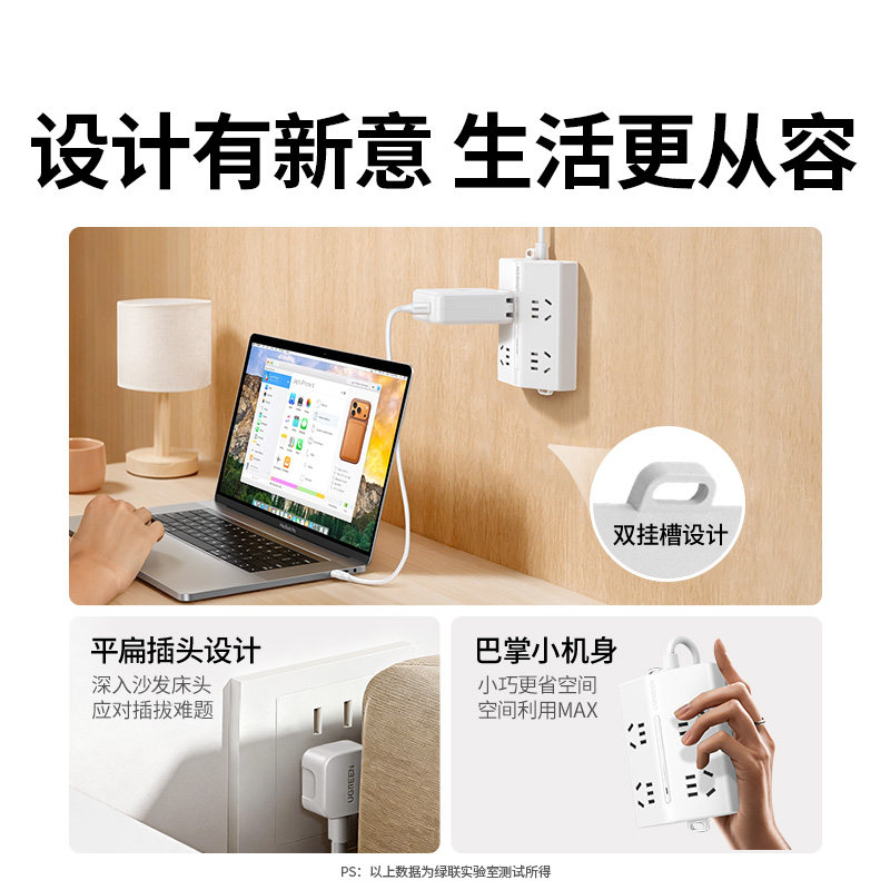 绿联T6梯形排插插座插板接线板大间距多功能桌面usb充电多孔插排 - 绿联数码旗舰店