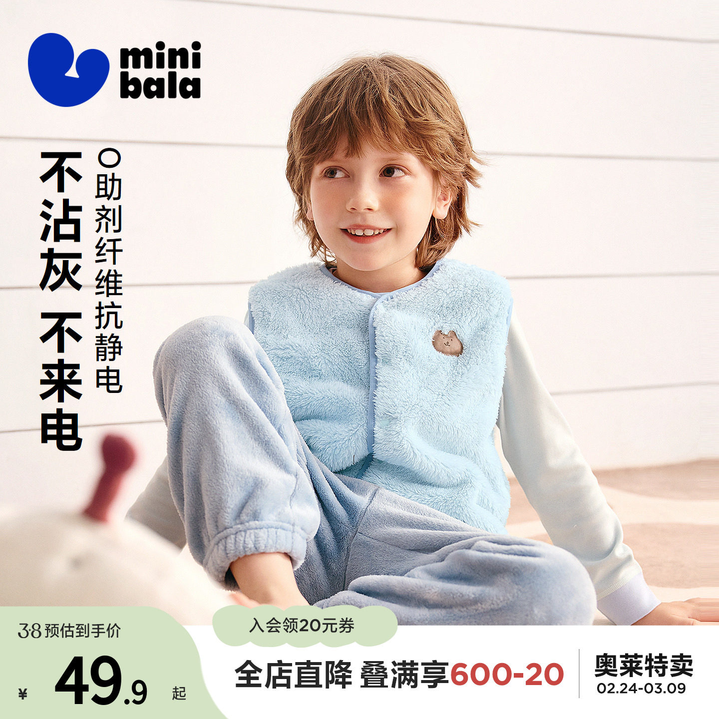 【抗静电】迷你巴拉儿童保暖马甲男女童宝宝秋冬双面珊瑚绒背心 - minibala童装outlet店