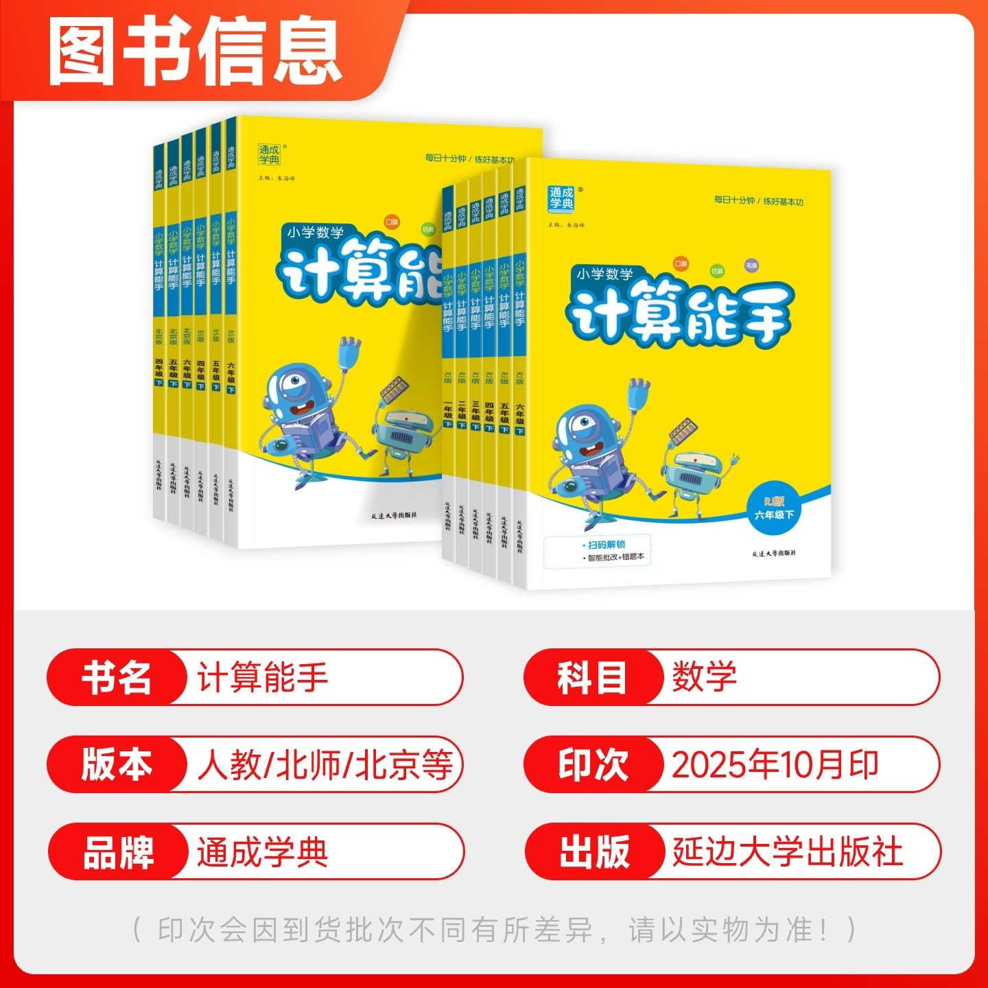 2026春版小学数学计算能手一年级二三四年级五年级六年级下册人教北师大苏教沪教版小学数学口算题思维训练专项练习册口算通城学典 - 上海钟书图书专营店