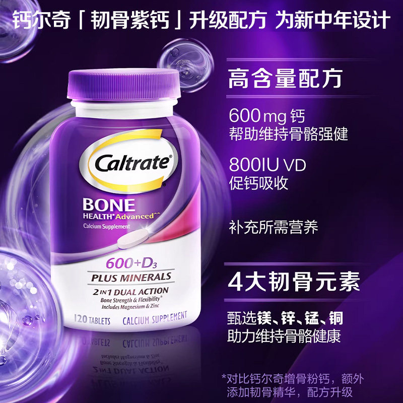 钙尔奇美国中老年钙片补钙维生素d3成人紫钙120粒*2旗舰店正品 - Caltrate钙尔奇海外旗舰店