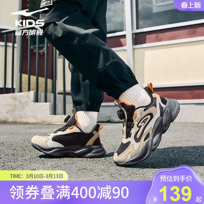 晨星|鸿星尔克童鞋男童秋冬革面防泼水儿童休闲老爹鞋旋钮运动鞋 - 鸿星尔克童装旗舰店