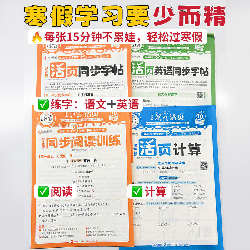 您的位置:优特荟  >   >  2026王朝霞寒假三件套活页计算阅读同步字帖专项训练人教一二三四五六年级语文数学英语寒假作业衔接教材计算阅读理解寒假打卡训练
