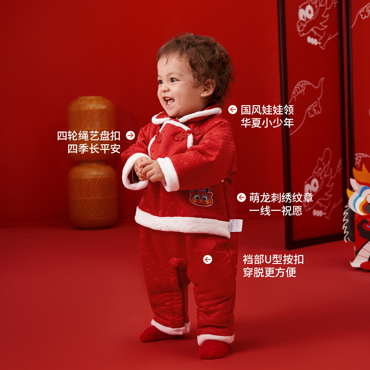 aqpa爱帕新年婴儿服夹棉连体衣棉服哈衣秋冬宝宝拜年服龙过年喜庆 - aqpa爱帕旗舰店