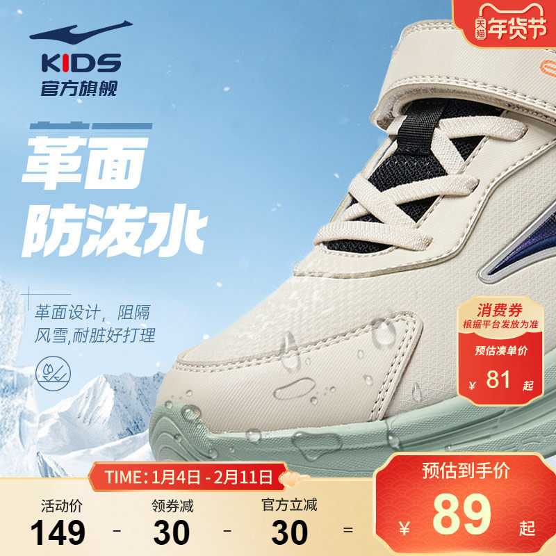鸣鸥2|鸿星尔克童鞋男童加绒鞋子秋冬运动鞋革面学生跑步鞋二棉鞋 - 鸿星尔克童装旗舰店