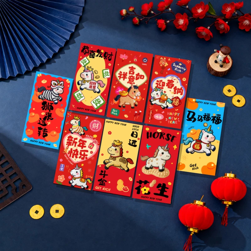 M爆款2026款卡通手绘福马萌马系列平面刺绣风格可爱卡通春节红包 - 国货严选 工厂店