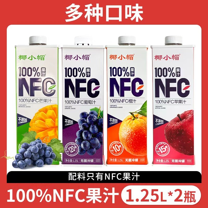 椰小帽100%NFC果汁1.25L*2瓶多种口味果汁饮料超值可选商超同款H - 椰小帽旗舰店