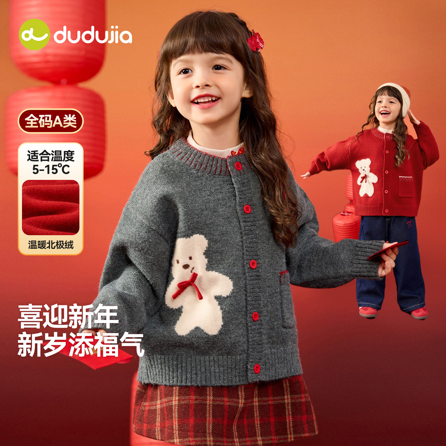 嘟嘟家女童红色毛衣女孩冬季拜年服宝宝新年上衣儿童女宝过年衣服 - DuduBaby婴童店