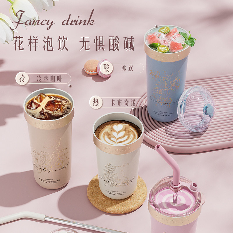 雄泰2024新款陶瓷内胆吸管水杯子保温杯咖啡巨无霸大容量女高颜值 - 雄泰官方旗舰店