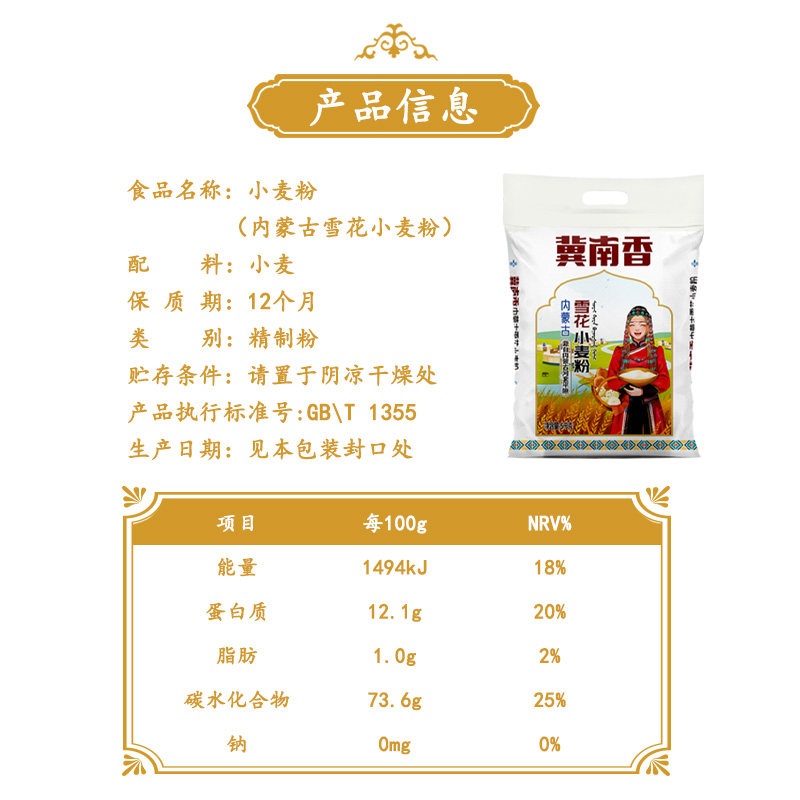 【库存】5kg冀南香内蒙雪花粉包子饺子馒头饼手工筋道雪花小麦粉 - 冀南香旗舰店