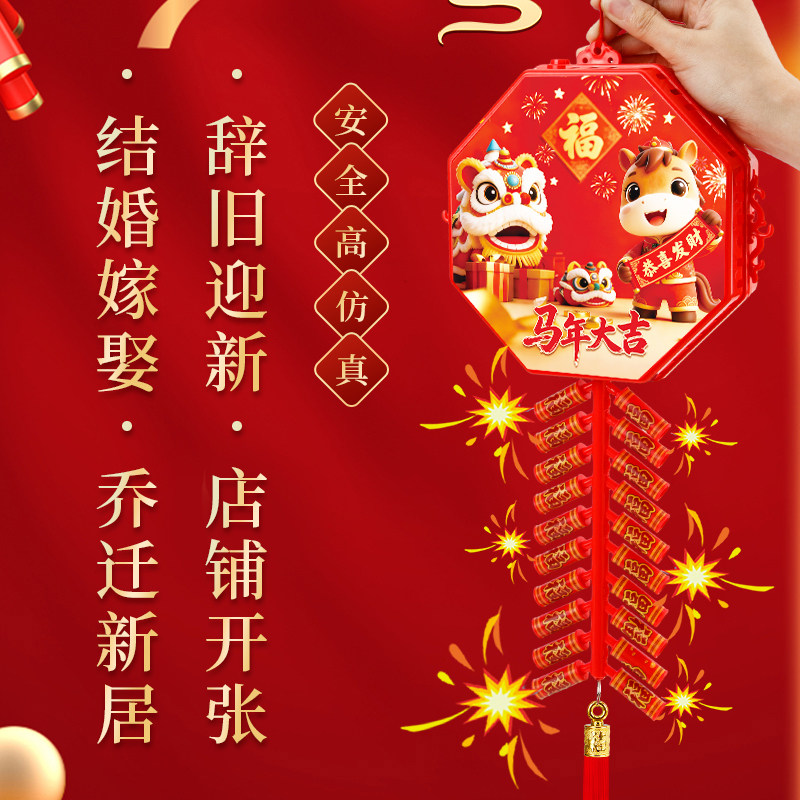 TJ-新年电子鞭炮声光玩具儿童春节新年大吉红色挂件 - 国货严选2店