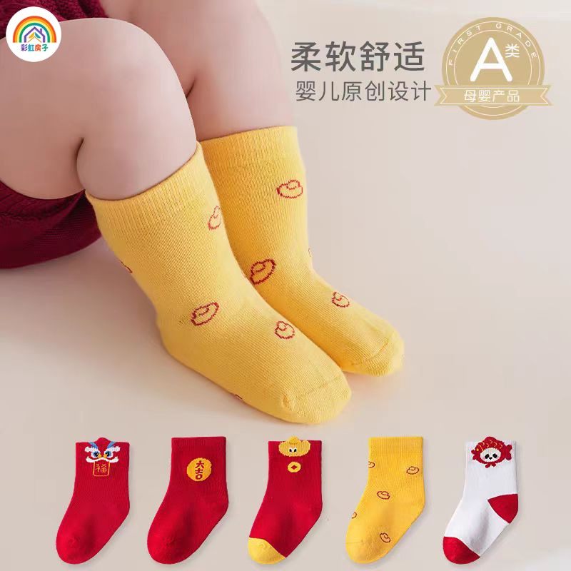 彩虹房子婴儿袜宝宝袜儿童防滑地板袜公仔秋冬款新生婴儿袜子 - 彩虹房子母婴旗舰店