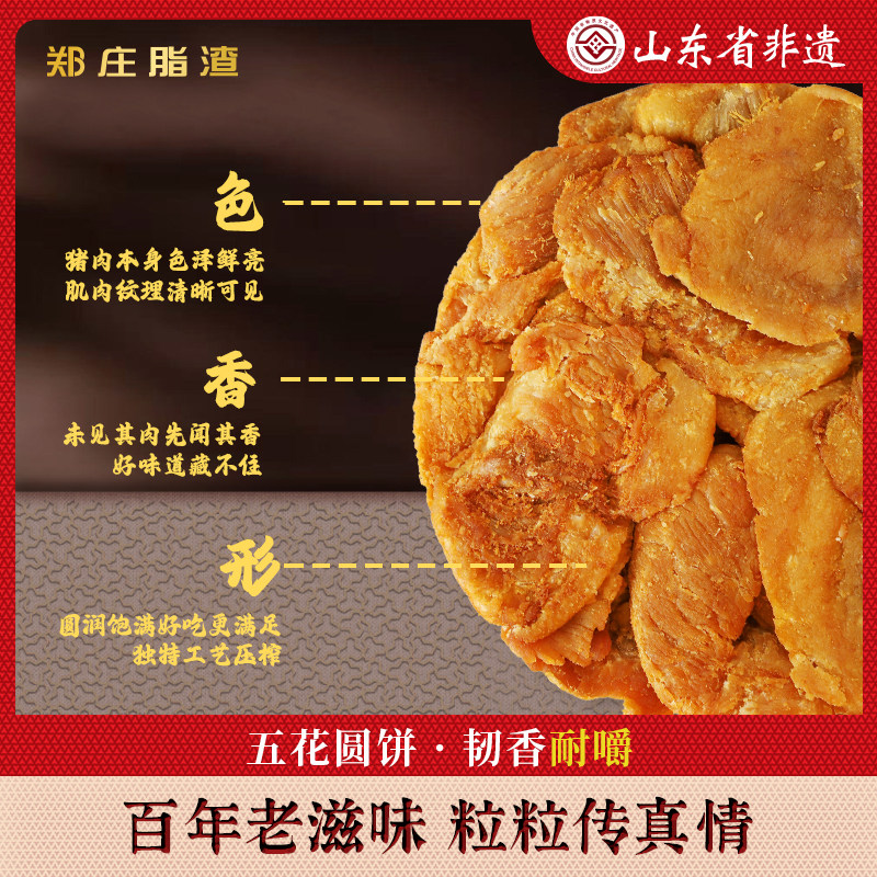 郑庄脂渣经典圆饼青岛脂渣猪油渣肉脂渣青岛特产休闲生酮零食小吃 - 郑庄食品旗舰店
