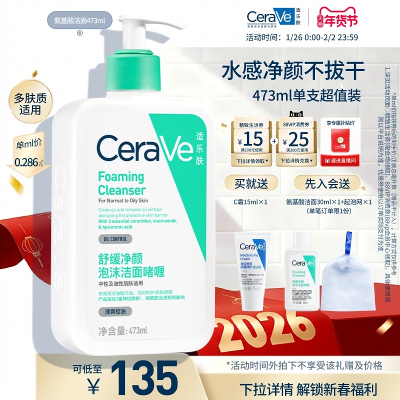 CeraVe适乐肤氨基酸洗面奶洁面乳男女中性油性温和保湿清洁正品 - CeraVe适乐肤官方旗舰店