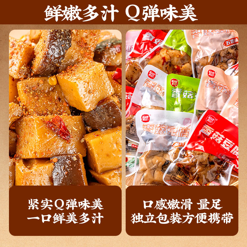您的位置:优特荟  >   >  石牌磨房香菇豆腐小零食散装豆腐干五香辣条卤味素肉小包装解馋