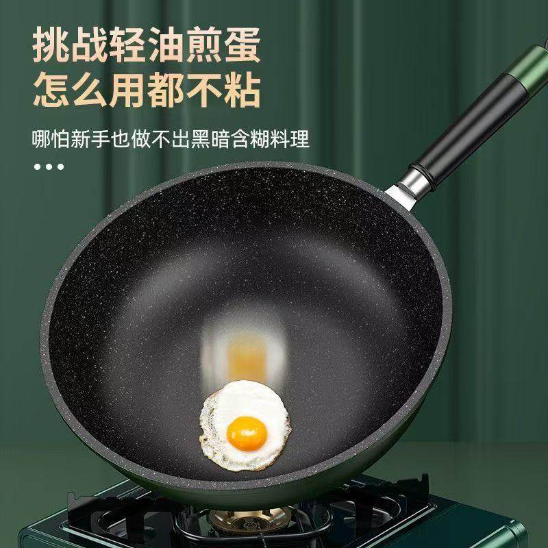 麦饭石炒锅不粘锅电磁炉燃气灶专用加厚平底家用炒菜锅煤气灶适用 - 小小仙女百货铺