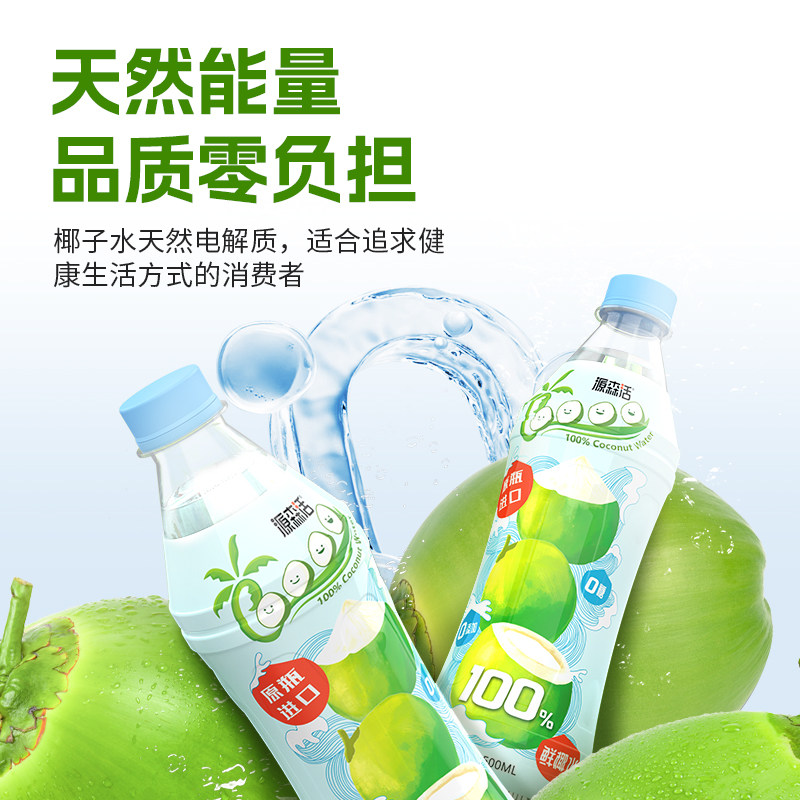 【5瓶装】源森活100%泰国进口香水椰子水电解质整箱大容量500ml*5 - 源森活旗舰店