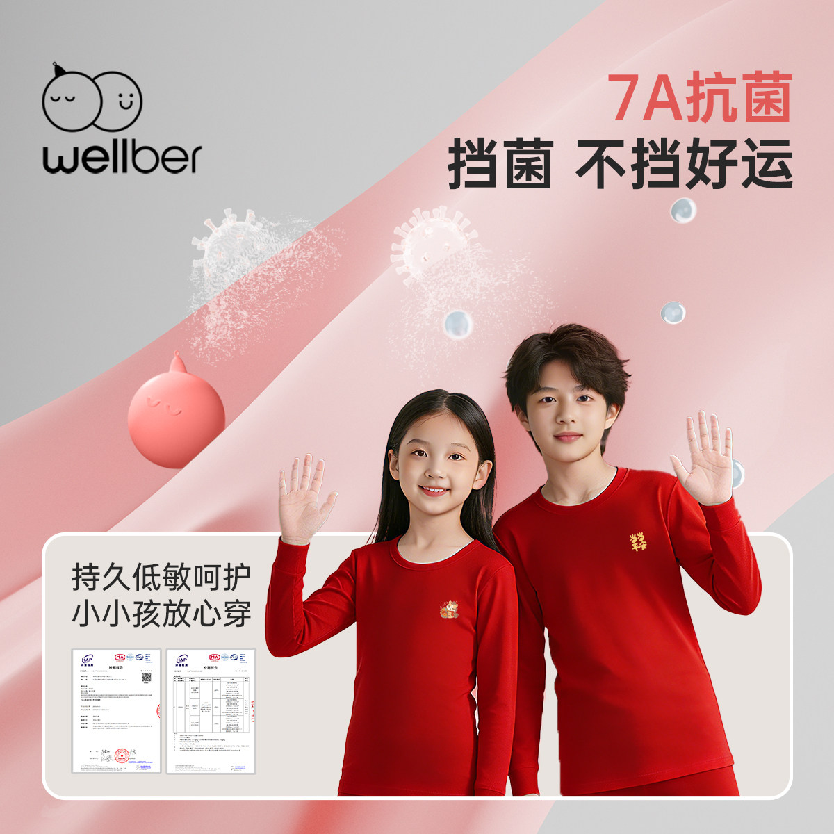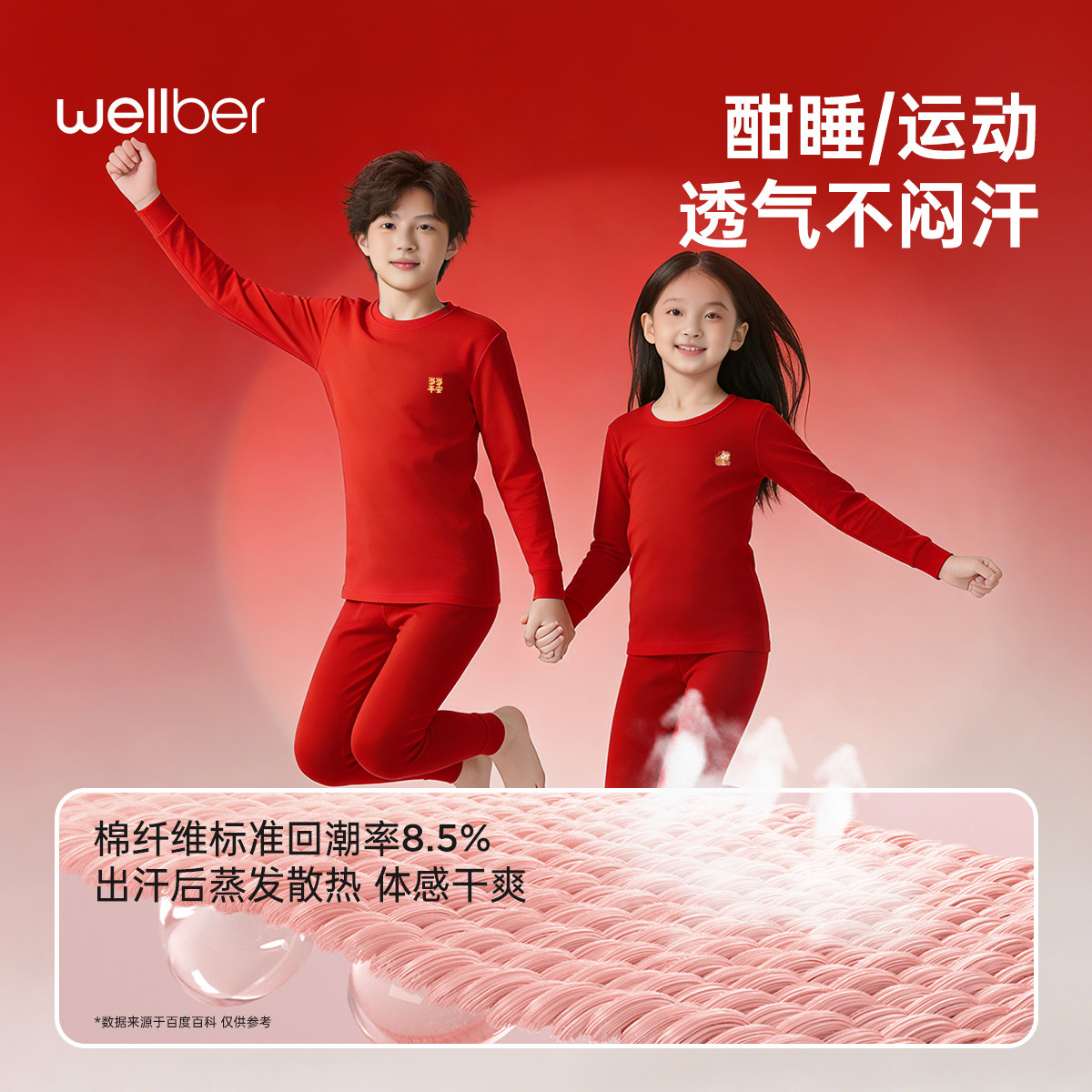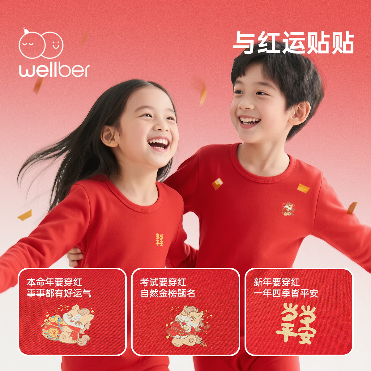 威尔贝鲁成人儿童本命年红色保暖内衣套装纯棉新年中大童秋衣秋裤 - wellber旗舰店