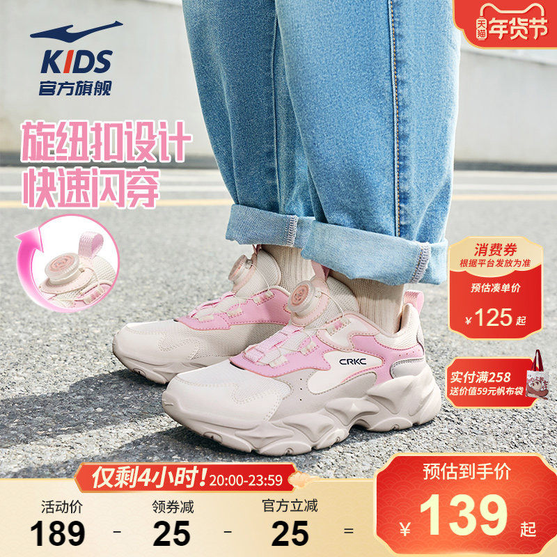 衍界4|鸿星尔克童鞋女童休闲鞋春季粉色鞋子新款轻便儿童运动鞋 - 鸿星尔克童装旗舰店