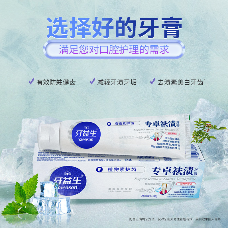 牙益生专卓去渍牙膏40g护齿祛烟渍茶渍咖啡渍含氟清新口气护龈 - 牙益生旗舰店