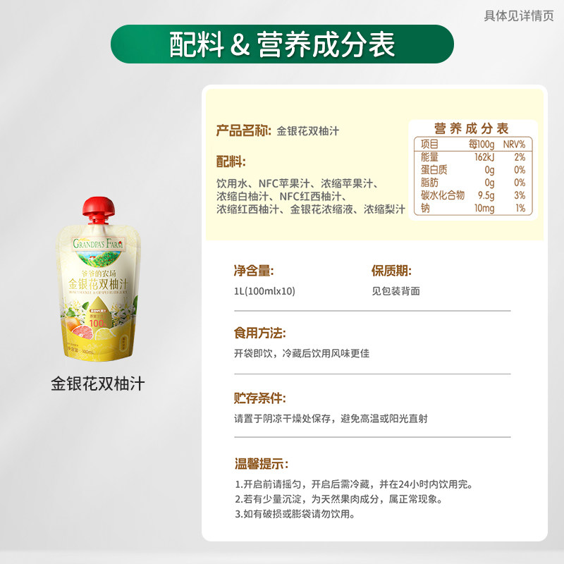 爷爷的农场金银花柚子汁宝宝饮品儿童饮料含NFC果汁饮料儿童牛奶 - 天猫超市