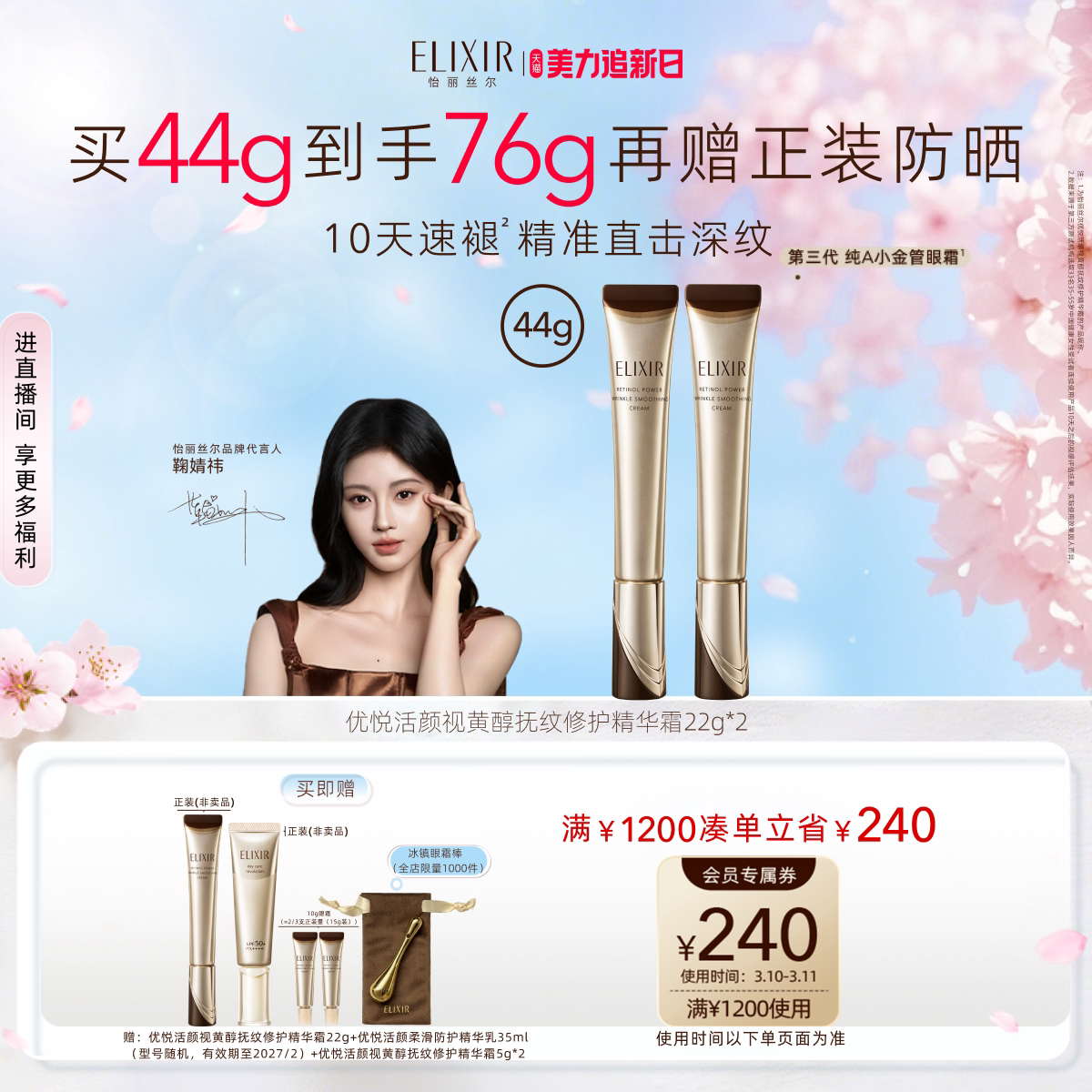 您的位置:优特荟  >   >  【自播专享】怡丽丝尔第三代纯A小金管眼霜抗皱紧致淡化皱纹双支