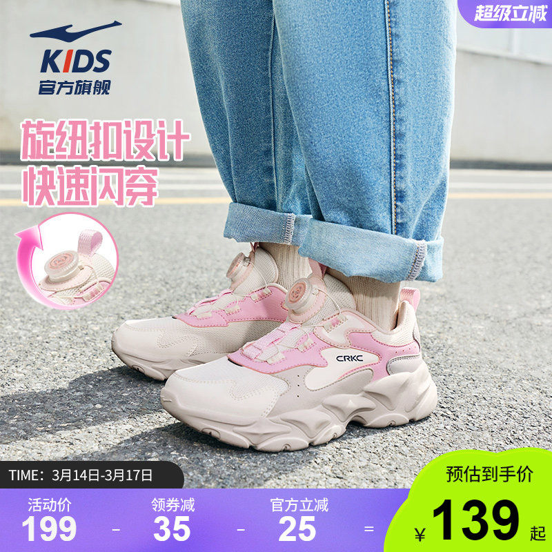 衍界4|鸿星尔克童鞋女童休闲鞋春季粉色鞋子新款轻便儿童运动鞋 - 鸿星尔克童装旗舰店