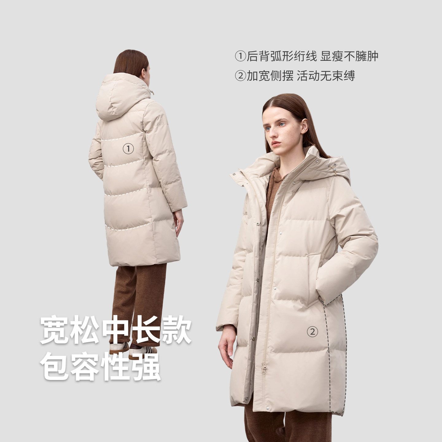您的位置:优特荟  >   >  BINJORA冰洁95绒白鸭绒女款羽绒服宽松中长款泡芙立体显瘦亲肤