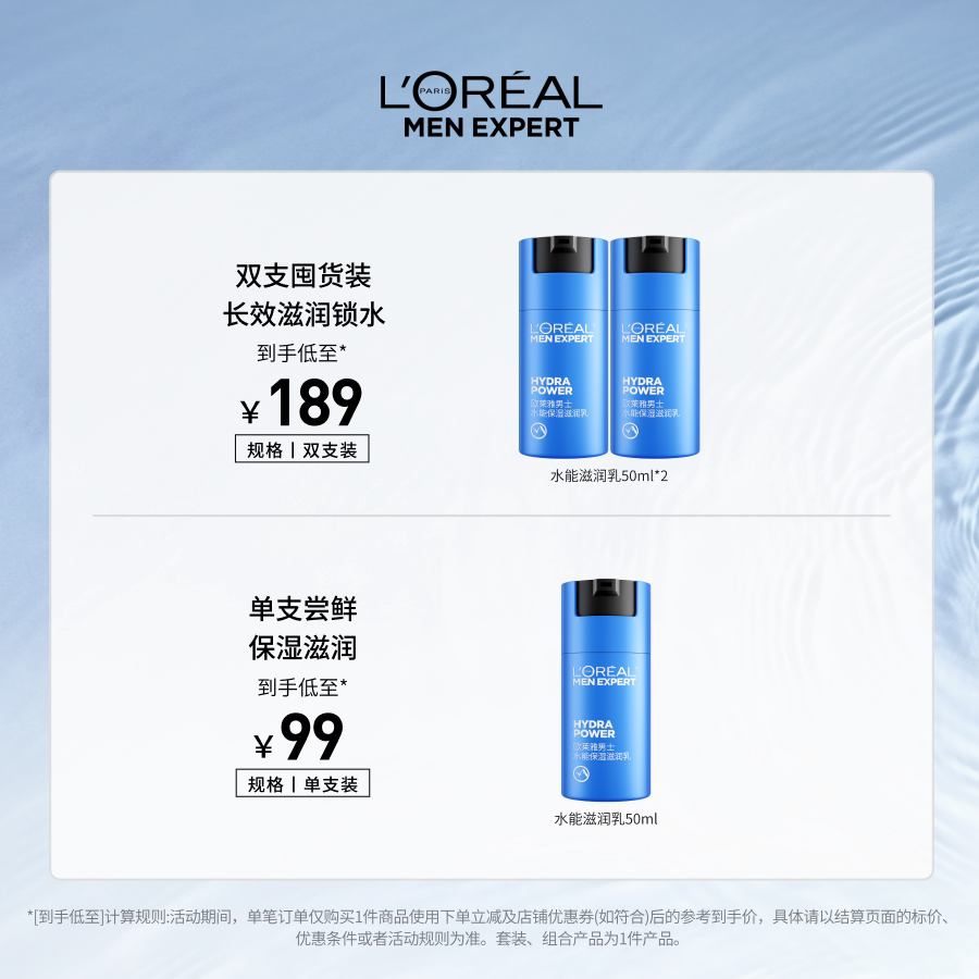 欧莱雅男士水能保湿滋润乳液面霜补水润肤擦脸部护肤品清爽玻尿酸 - 欧莱雅男士官方旗舰店