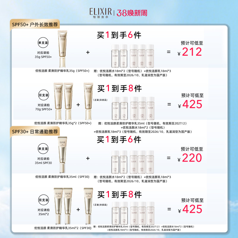 【38抢先购】怡丽丝尔小金管防晒霜美白防晒保湿美容修饰官方正品 - ELIXIR怡丽丝尔旗舰店